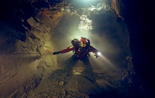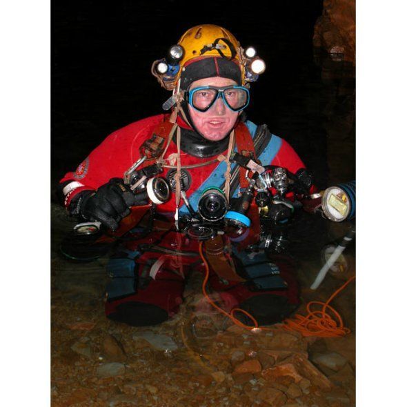 這些照片都是由馬丁-法爾所拍攝。法爾不僅僅是英國唯一一位洞穴潛水訓練師,也是英國最優秀的洞穴潛水攝影師。下個月,法爾還將跟隨一支潛水隊,嘗試完成一次世界最長水下洞穴的穿越與探險。法爾將在這一探險過程中,捕捉潛水員在水下洞穴中的精彩瞬間。他們這次探險的目的地是西班牙的波佐-阿祖爾洞穴。