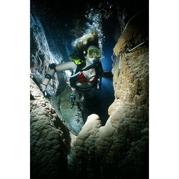 在義大利托斯卡納地區的格羅塔-圭斯蒂洞穴中,洞穴潛水員詹妮-平德正游過一道狹窄的水下通道。與英國水下洞穴的寒冷刺骨相比,格羅塔-圭斯蒂洞穴堪稱是一個“SPA”理想場所,它的水溫可達35攝氏度。