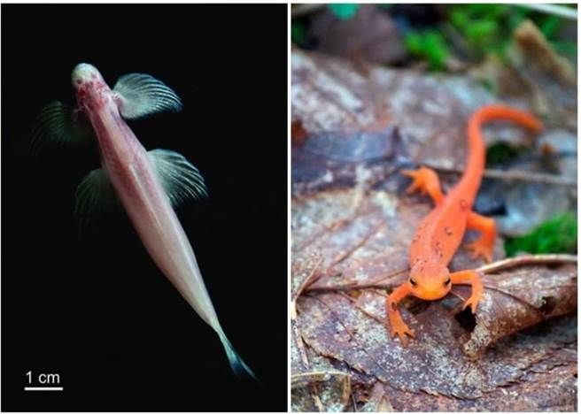 圖左為從上而下拍攝的穴魚照片,可見其擁有「四肢」;科學家指穴魚的步行姿態與蠑螈相似。(圖/on.cc東網)