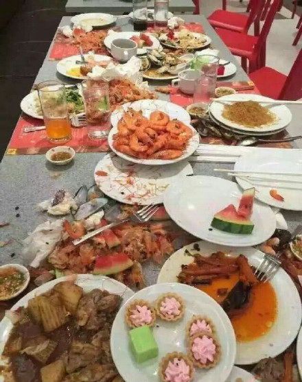 中國遊客在搶完蝦後,許多蝦都沒有動,造成很大浪費,讓旁人側目。(網絡圖片)