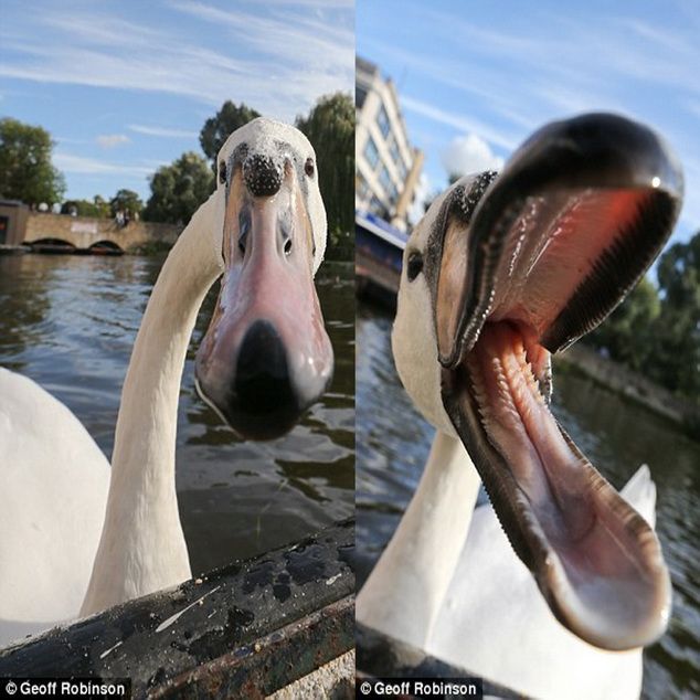 據《每日郵報》8月13日報道,一隻名叫Asboy的天鵝子繼承其父的暴躁脾氣,儼然成為劍河上的霸主,經常襲擊乘坐皮艇在劍河裡漫遊觀光、享受美景的遊客們。然而,遊客不僅沒有被嚇走,反而因為其霸氣行為專程前來觀看拍攝。