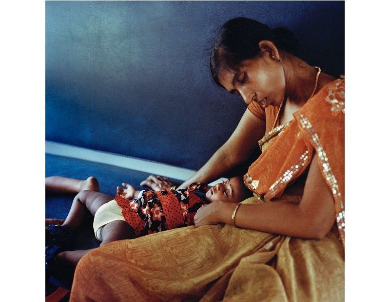 一個媽媽和她的嬰孩正在休息,這是她們在前往喀拉拉邦(Kerala)旅程的第三天,也是這趟火車之旅的最後一天。