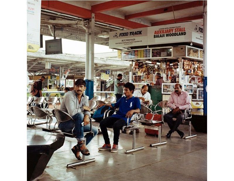在印度東西南北四條鐵路線交會的在喀拉拉邦(Kerala)斯霍拉努爾轉運站(Shoranur Junction),幾名乘客正在等候轉車。