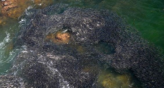 居民們靠近這些魚群以後,發現這些小魚的體積都很小,單個長度只有短短的幾厘米,但是魚群聚集的數量卻非常多,密密麻麻的根本數不過來,遠遠看去還有些讓人心裡瘮得慌。