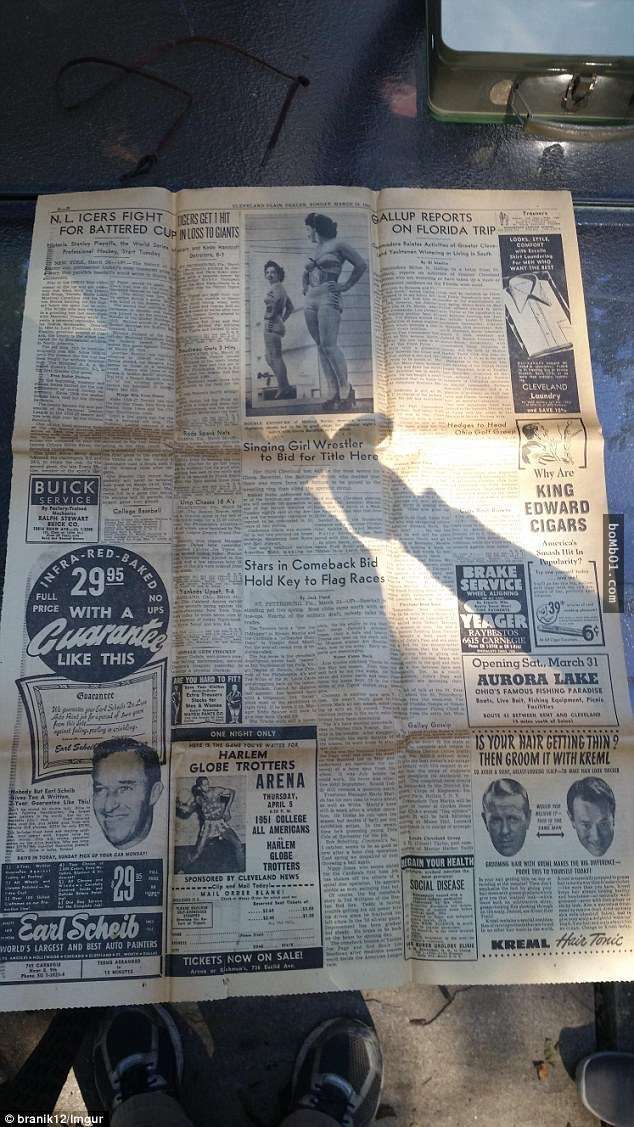 ▼箱子中有一張舊報紙,從日期看是1951年的。