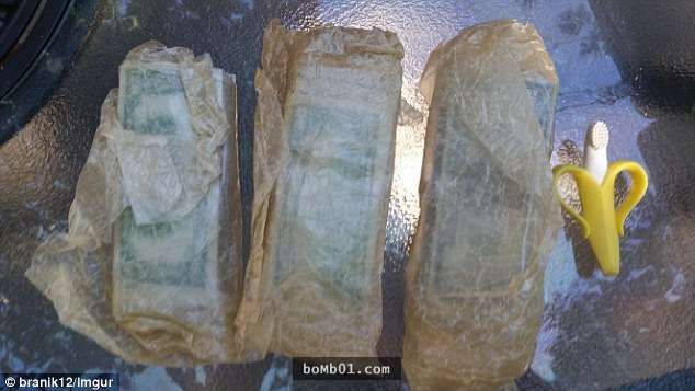 ▼拆開蠟紙,他們才知道這是3疊現金。