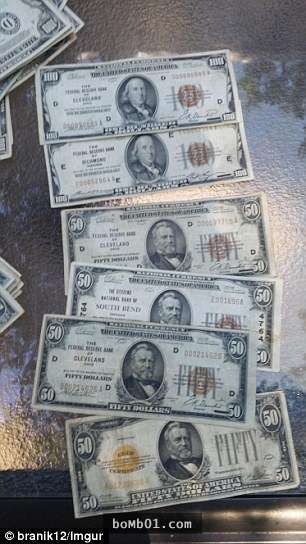 ▼第一包全是20美元的紙幣,第二包是50美元的,第三包則是100美元的。