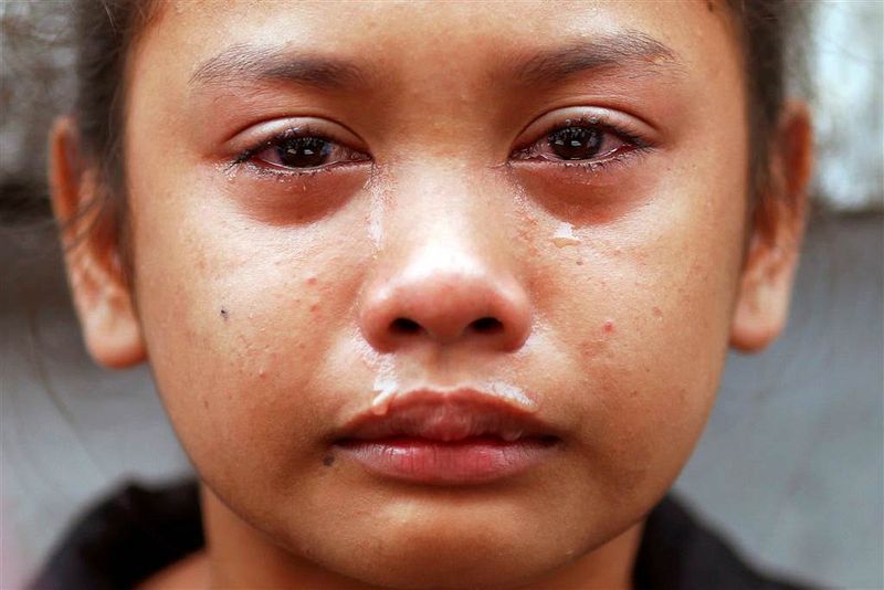 12歲的Kasandra Kate,在她父親Verigilio Mirano的葬禮上,對著開啟的棺材哭泣。(2016年10月14日,馬尼拉Navotas公墓)。據他的家人表示,Mirano一度沾毒,但在杜特蒂成為總統後就戒毒,卻在9月27日在家中被蒙面的槍手所殺死。