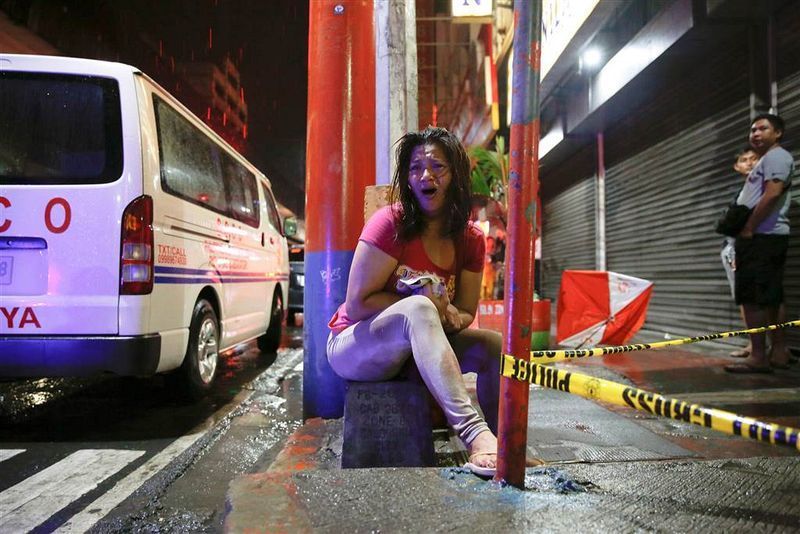 婦女在哭泣死去的丈夫。他是被一名身分不明騎著摩托車的槍手所射殺。(2016年10月10日,馬尼拉)