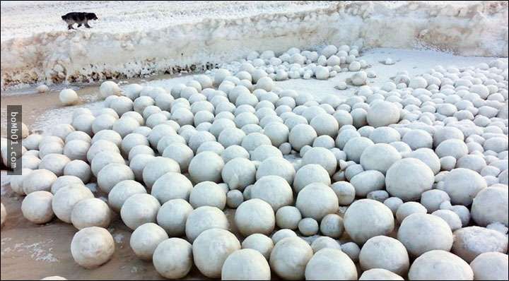 ▼雖然有些人猜測這些雪球或許是當地居民的惡作劇,但專家卻表示,這種自然現象雖然罕見,但並非人為,當水岸邊的積雪受到風吹、波浪等外力影響,加上適當的溫度時,就容易形成這種雪球。