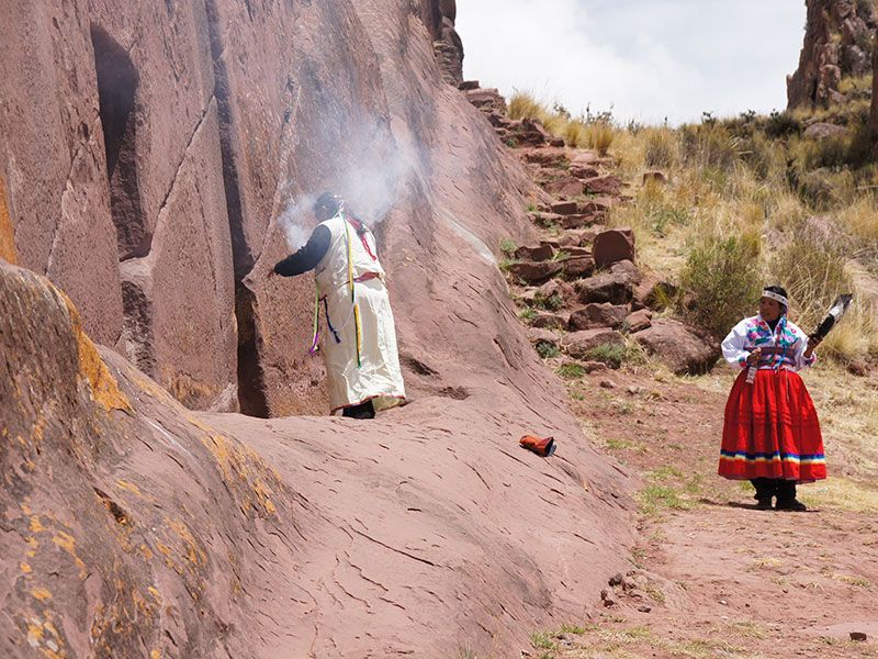 當地傳說描述,在遙遠的過去,一個印加神父阿馬魯穆魯(Amau Muru),從七彩聖殿帶着被稱為“七彩神明聖地的鑰匙”的神聖金色圓盤逃離,神父因害怕西班牙人搶走鑰匙,而將其藏在祕魯山中有的某處。