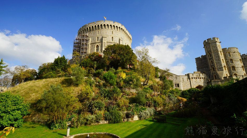 进入城堡时,可以领到中文语音导览器。按照上区、中区、下区来分层游览温莎城堡。其中最先经过的是中区,玫瑰花园围绕的圆塔是中区最明显的标志,曾经这里是关押王室政敌的监狱。圆塔之下,藏有深深的水井,因为曾经的守卫者担心长期被围攻没有水喝。之前的圆塔周围是护城河,而如今护城河被填成了绿草如茵鲜花盛开的花园。