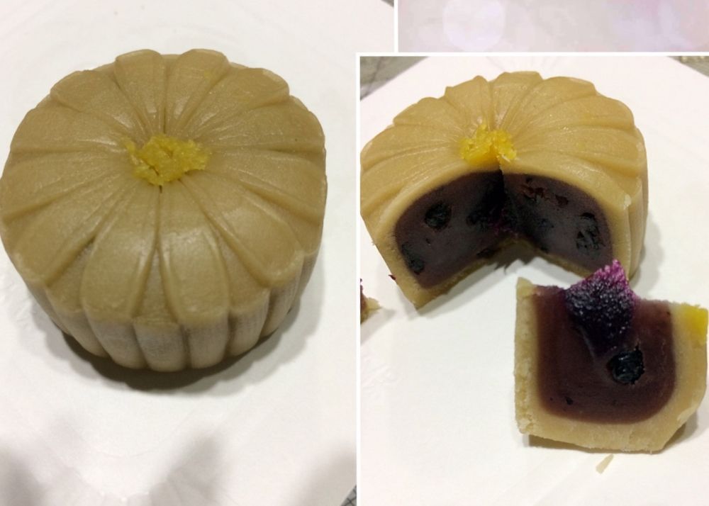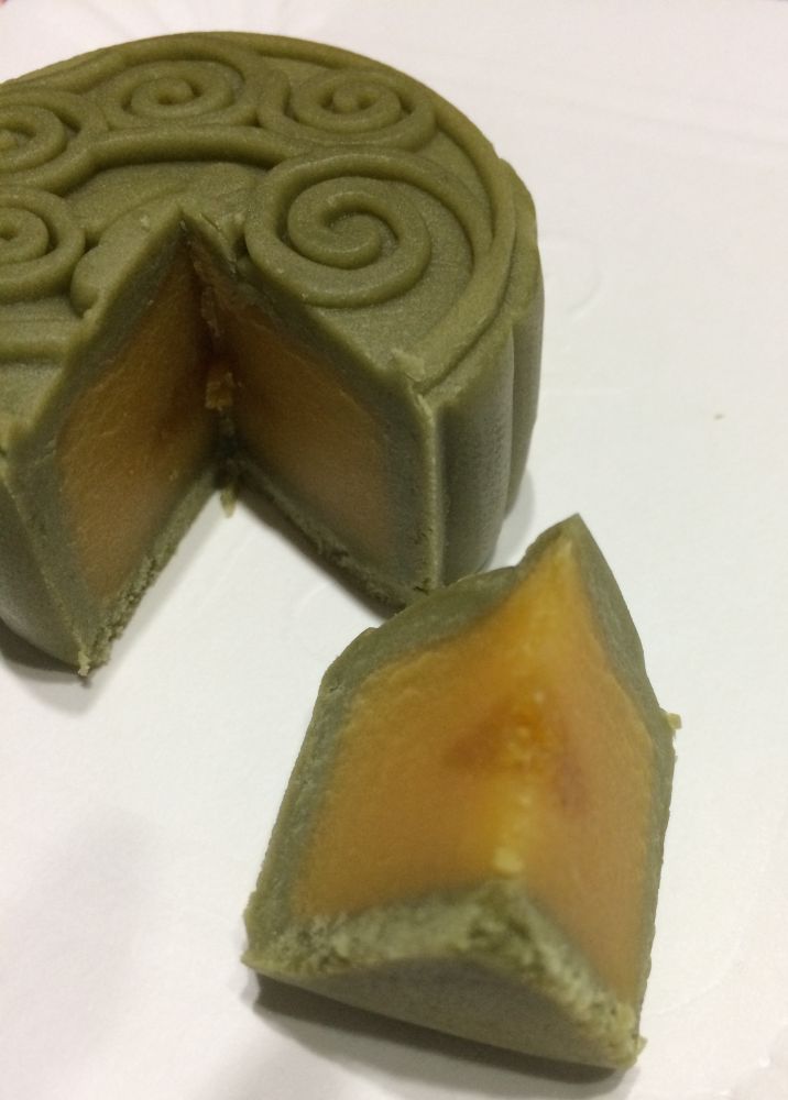 內餡接近奶黃餡,奶香十足,餅皮裏有抹茶粉。對愛好抹茶的我來說,茶味淡了一點。