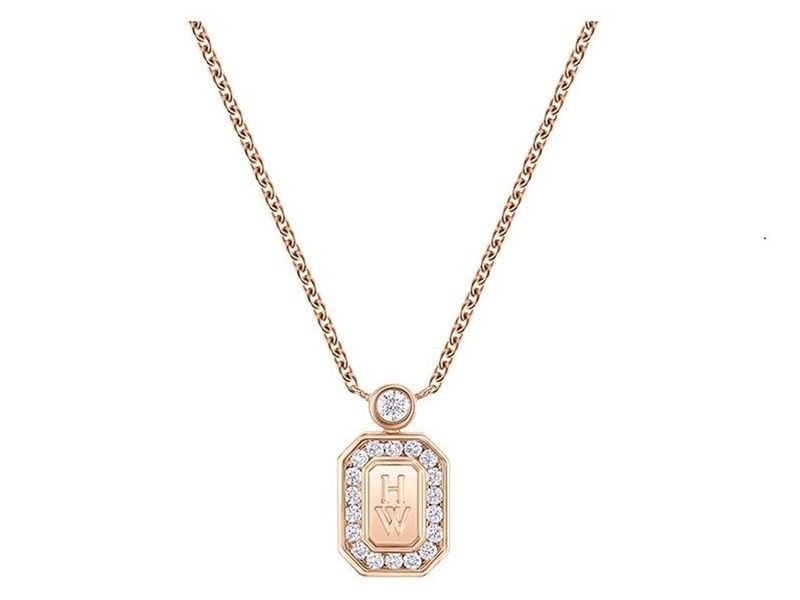 HW 標誌,玫瑰金鑽石吊墜項鍊。零售價為美元 2,300美元。便於即將到來的耶誕季節贈禮之用。