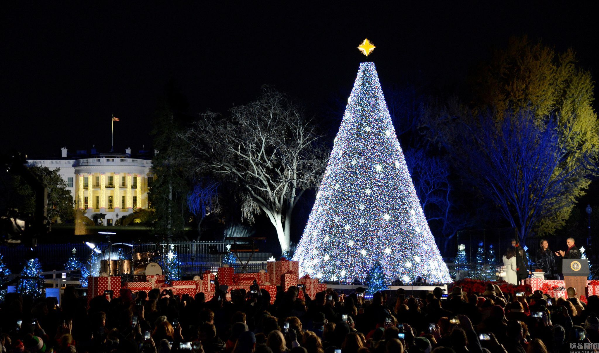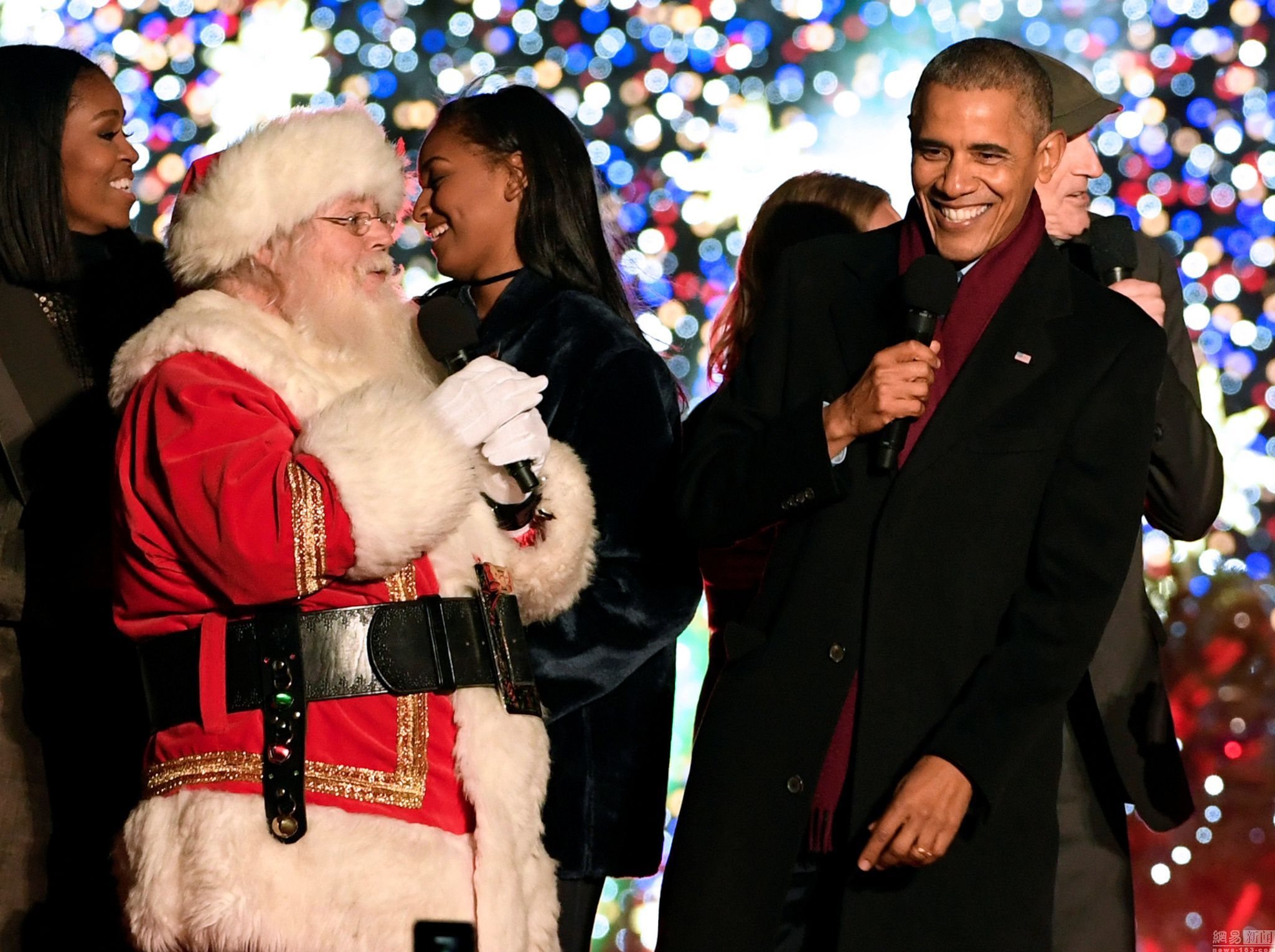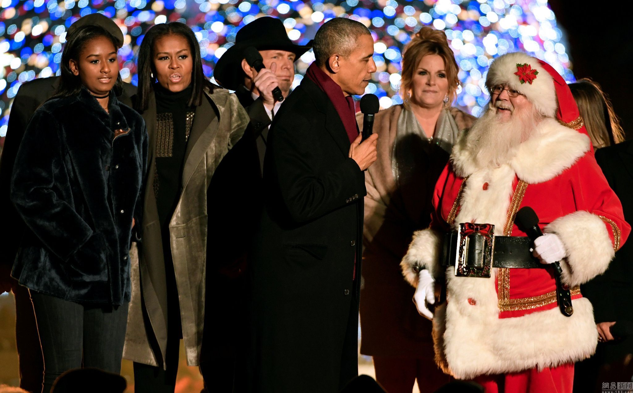 當地時間2016年12月1日,美國華盛頓,白宮舉行國家聖誕樹亮燈儀式,為全美的聖誕假日季拉開序幕。美國總統奧巴馬與家人參加了此次活動。