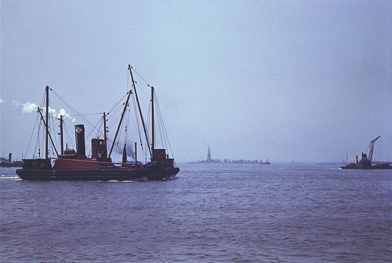 從曼哈頓市區,遙望彼岸的自由女神像。(1941年6月6日,紐約)
