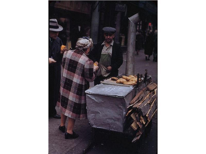 烤馬鈴薯的小販。(1942年10月4日,紐約)