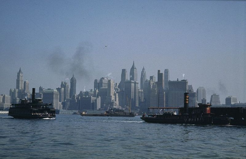 從澤西市渡輪上,遙望下曼哈頓(Lower Manhattan)。(1941年9月27日,紐約)