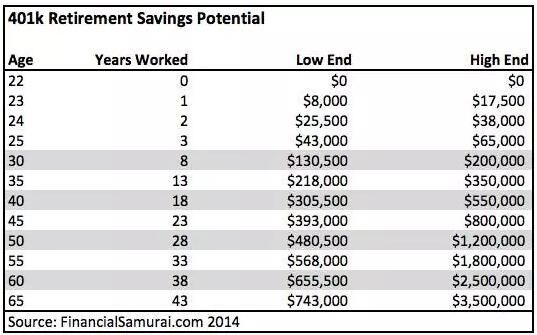 任何50歲或以上的人目前可以每年最多可存入24,000美元到401K,每年存儲最多6,500美元到個人退休賬戶(IRA)。如果退休投資可以獲得相對保守的4%年平均回報,在10年間,每月節省250美元,退休後可多出36,000美元。