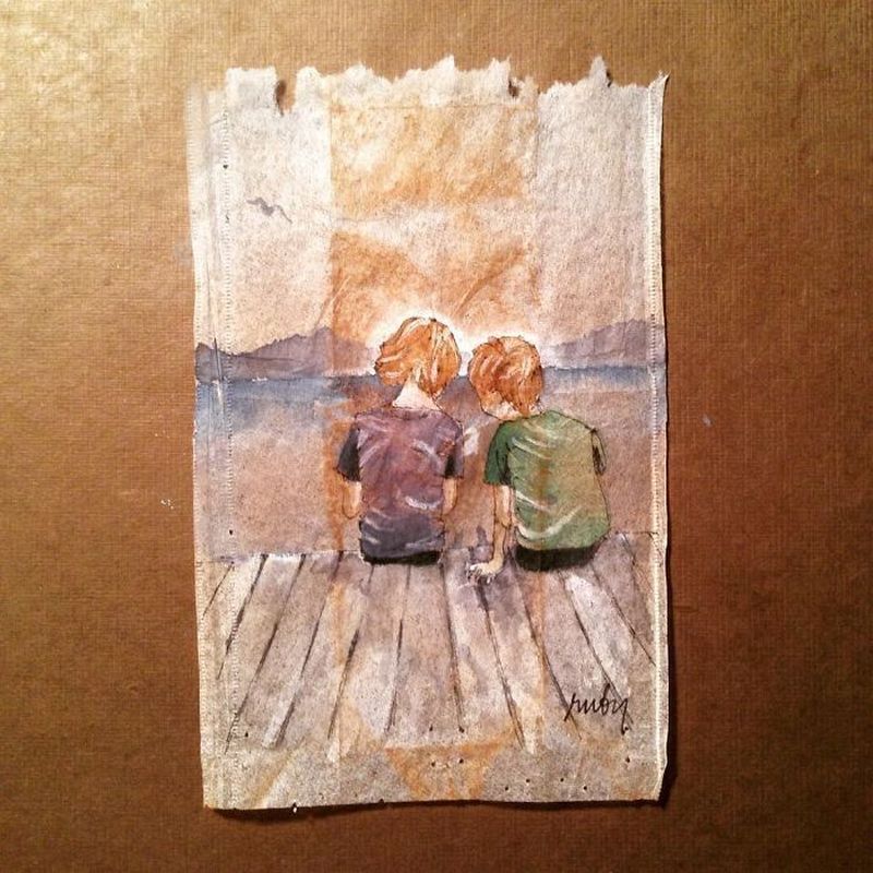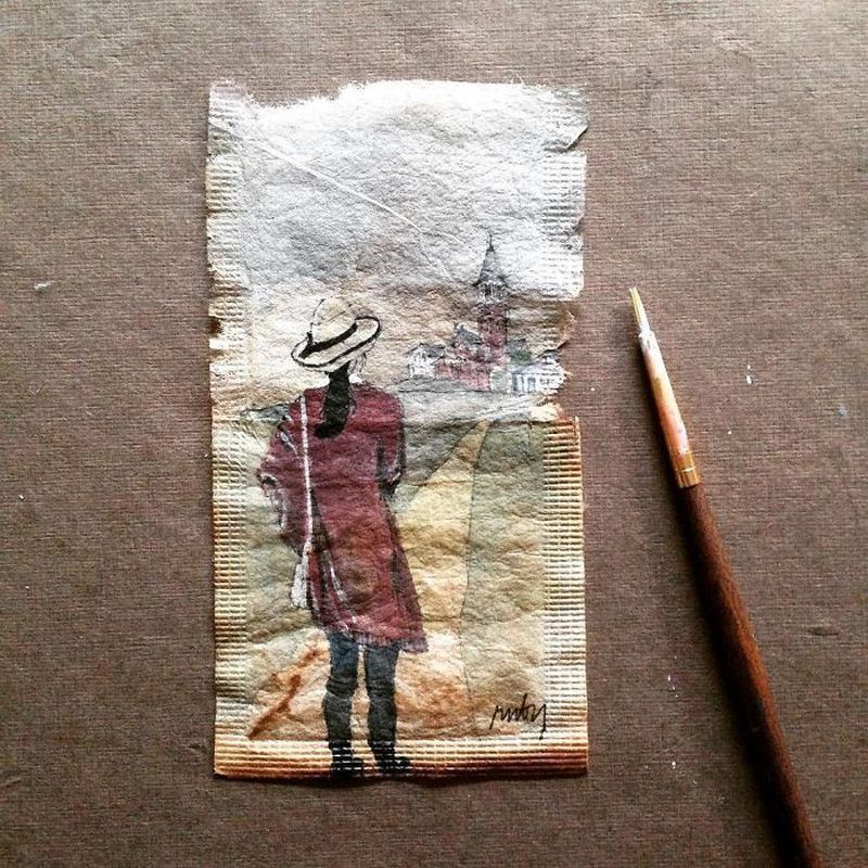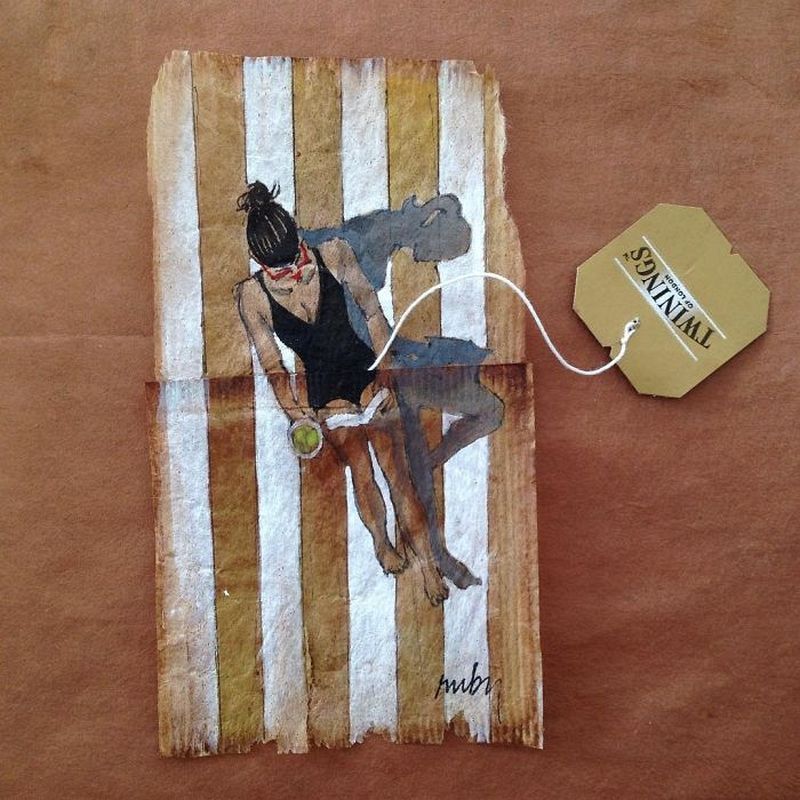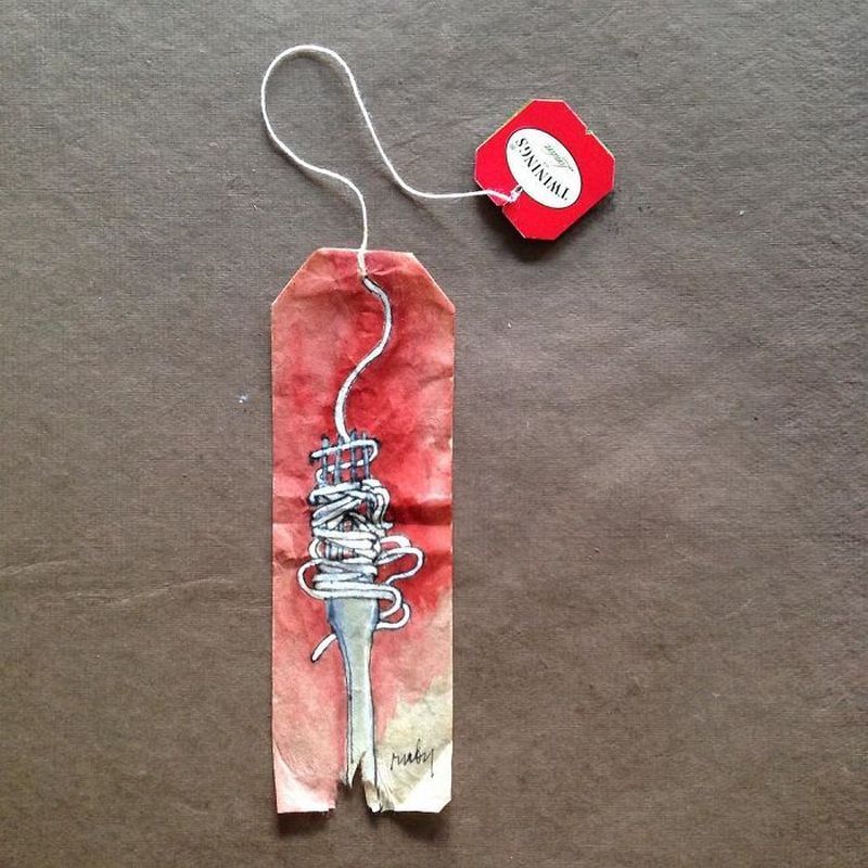 【新三才編譯】(文/罔市)畫家Ruby Silvious在旅居日本期間,把用過的茶包當成畫布,把每天的心情或見聞逐日記下,最後結集出書《363 Days of Tea》。