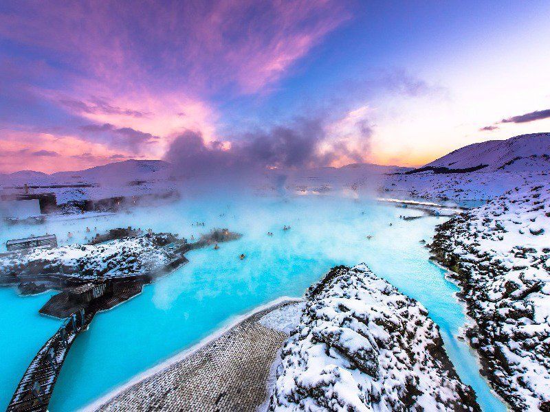 冰島可能聽起來像一個冰冷的地方,如果你在冬天前往,你會驚訝地發現,儘管它的緯度接近北極圈,但是由於有灣流的溫度,在這個季節裡卻是相對的溫和。事實上,紐約市的天氣可能比雷克雅未克的天氣還要冷,而且通常它與倫敦或阿姆斯特丹等城市相當。雖然你需要把全身裹緊,但是很值得的,因為你將會看到一些世界上最奇特的風景,從無涯的冰天雪地,閃閃發光的藍色冰川、冰洞到局部凍結的瀑布。你還會有機會去欣賞北極光。在距離首都只有很短的車程,你就可以泡在傳奇的藍色潟湖中(如上圖),享受舒緩的溫泉,同時喝一杯清爽的飲料,並欣賞著周圍壯麗的風景。