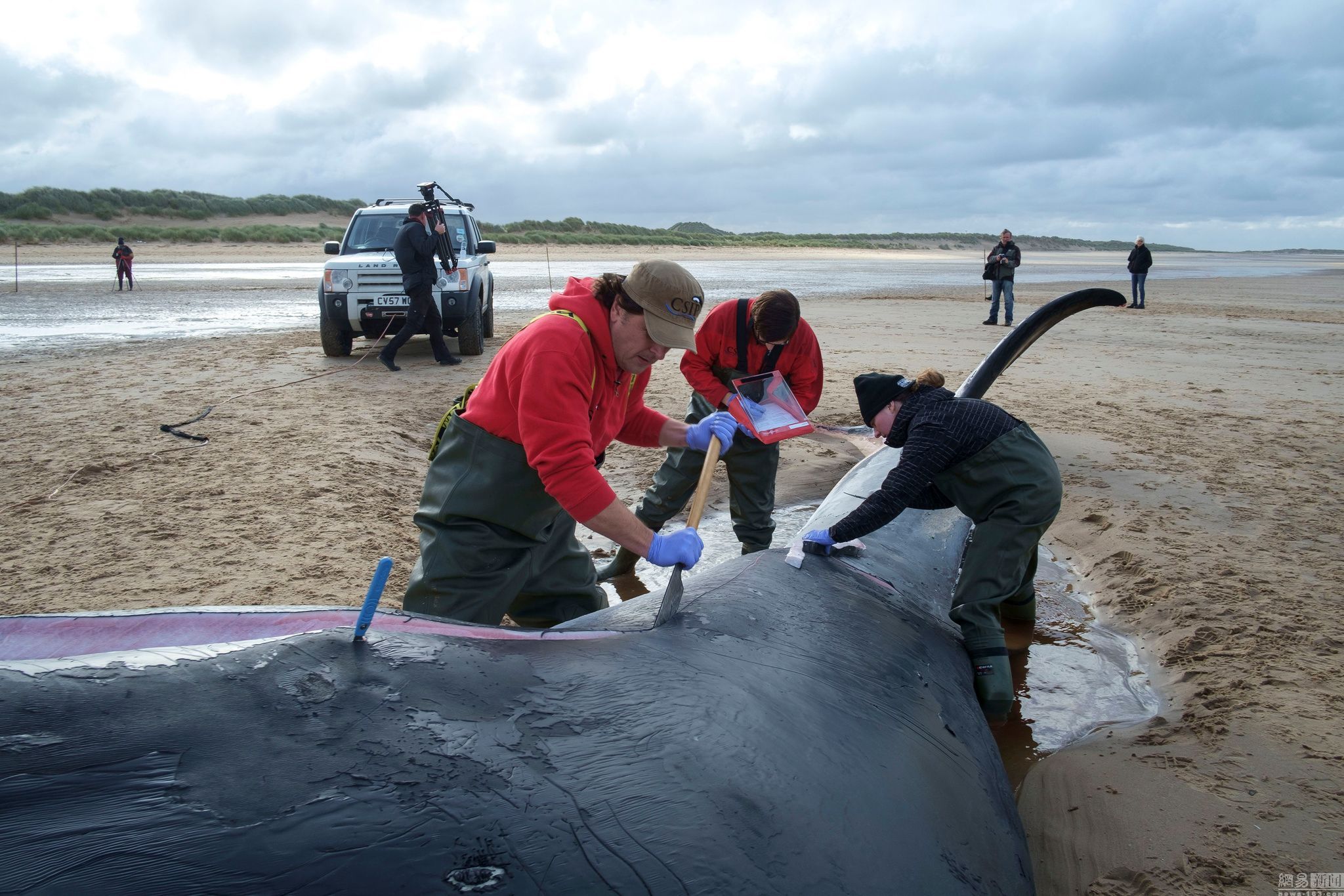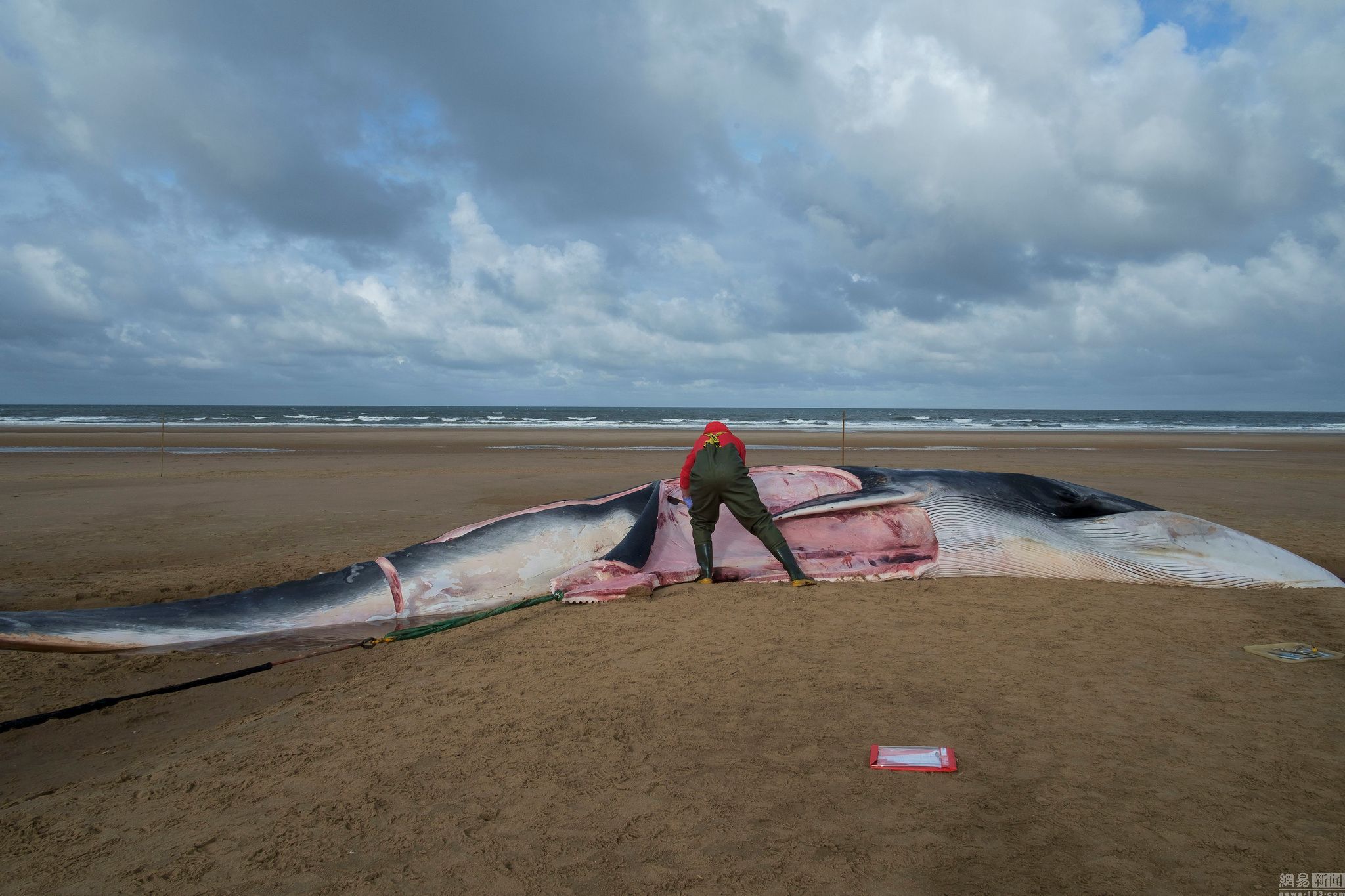 當地時間2016年10月21日,英格蘭諾福克,Rob Deaville是英國鯨類擱淺調查研究項目的負責人,他和他的研究小組在Holkham海灘發現鯨魚擱淺。每當有鯨魚或海豚死在海灘上,Deaville就得開始他的工作,迄今為止,他已經解剖過數不清的鯨類。