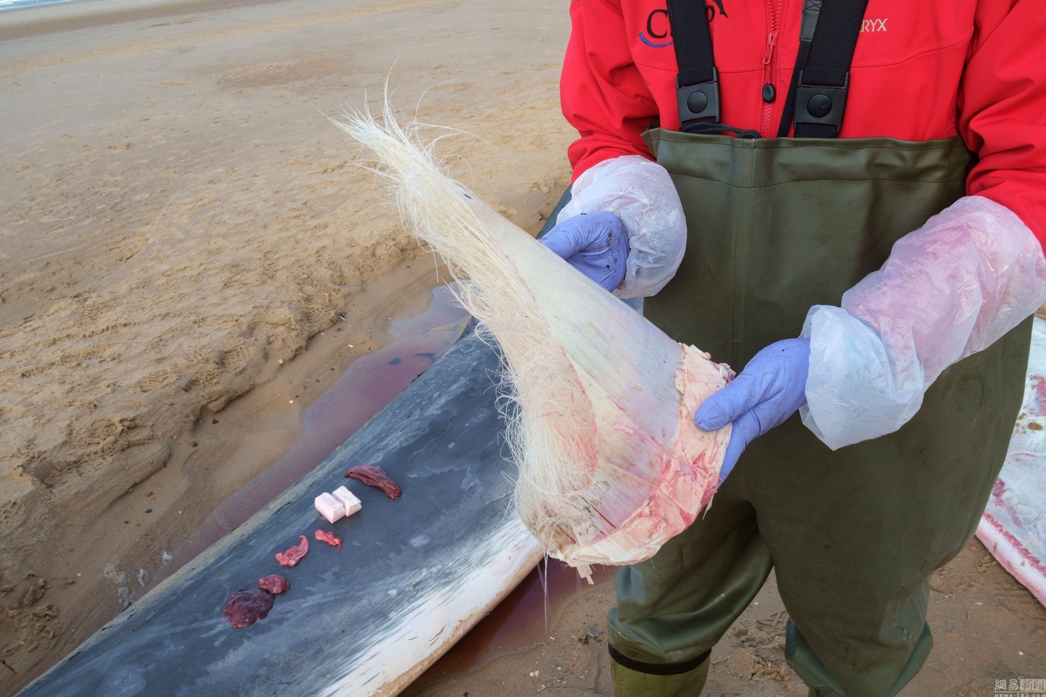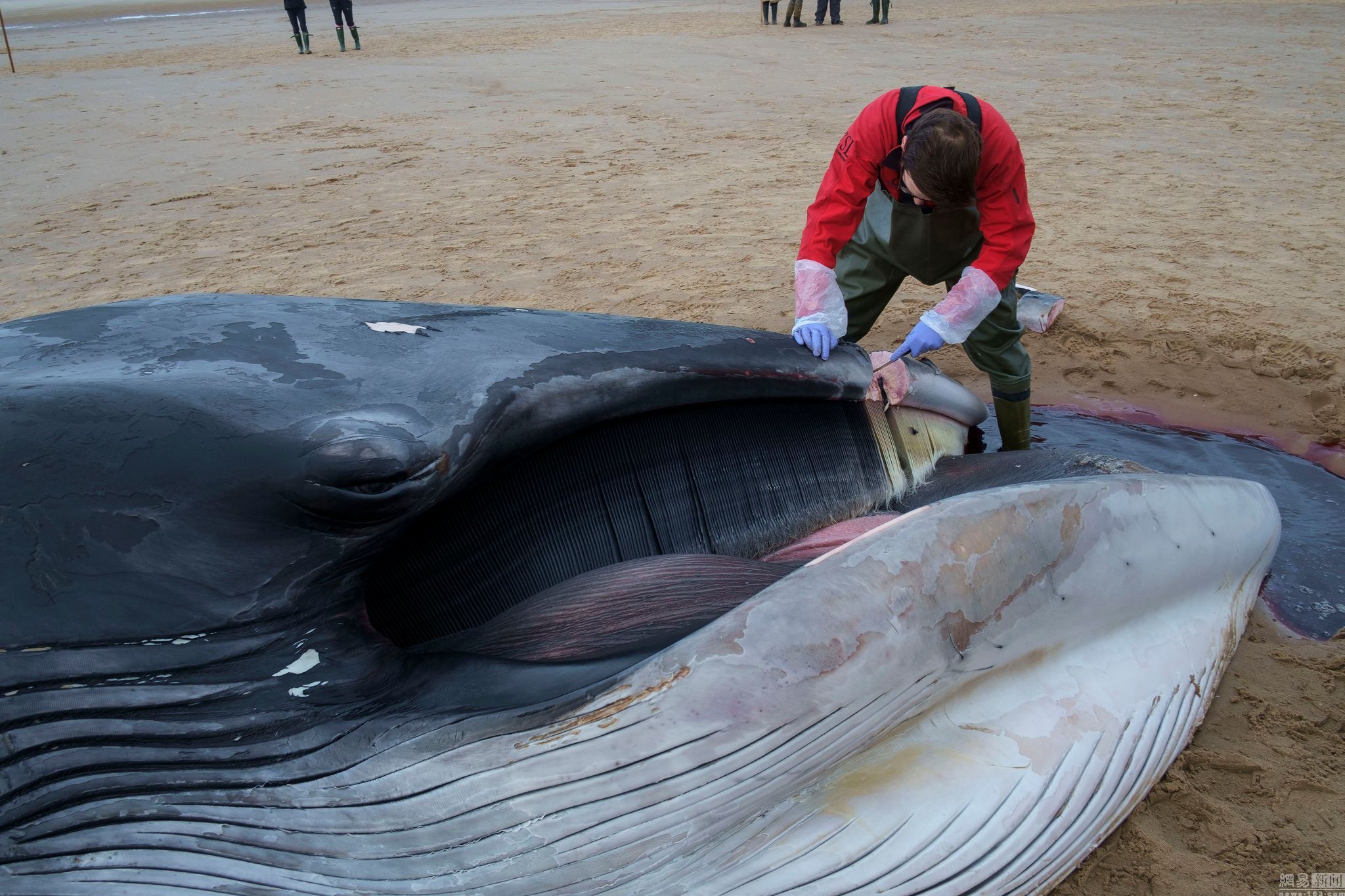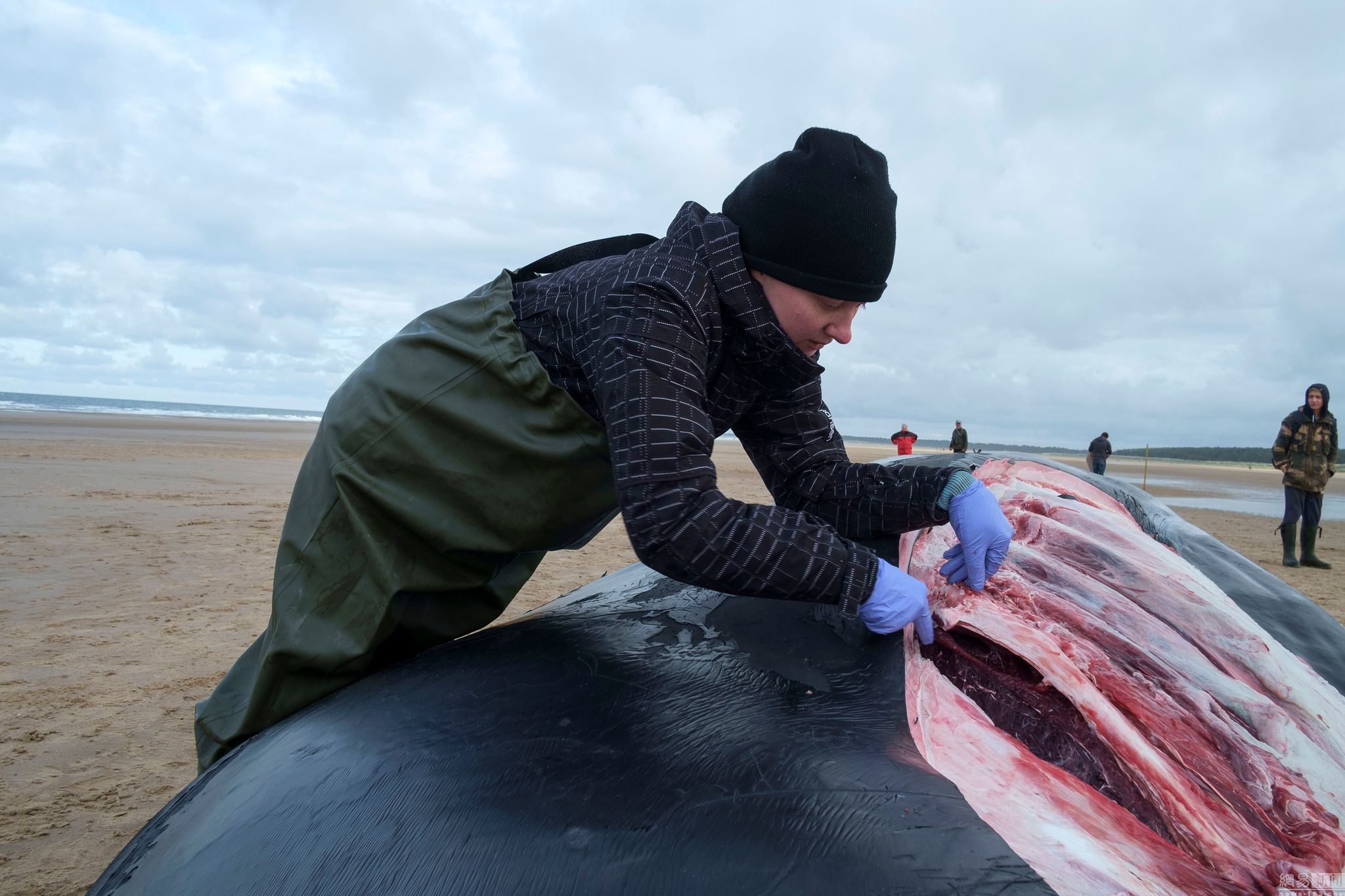 圖為Rob Deaville在解剖鯨魚。