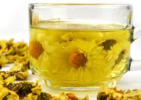 干菊、茶葉以開水沖泡數分鐘後飲用,能清肝明目、清熱解毒,對乾咳、咽痛、眼疾等也有一定療效。