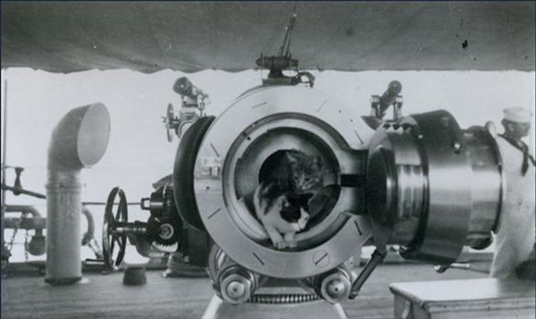 第一次世界大战大概有50万只猫上了战场,主要任务是消灭战壕和船上的老鼠,不过它们也成为了士兵的宠物和吉祥物。除了在陆地战场上发挥巨大作用,猫咪们在海上也扮演着非常重要的角色。猫作为航海的必备神物,已经有几千年的历史。