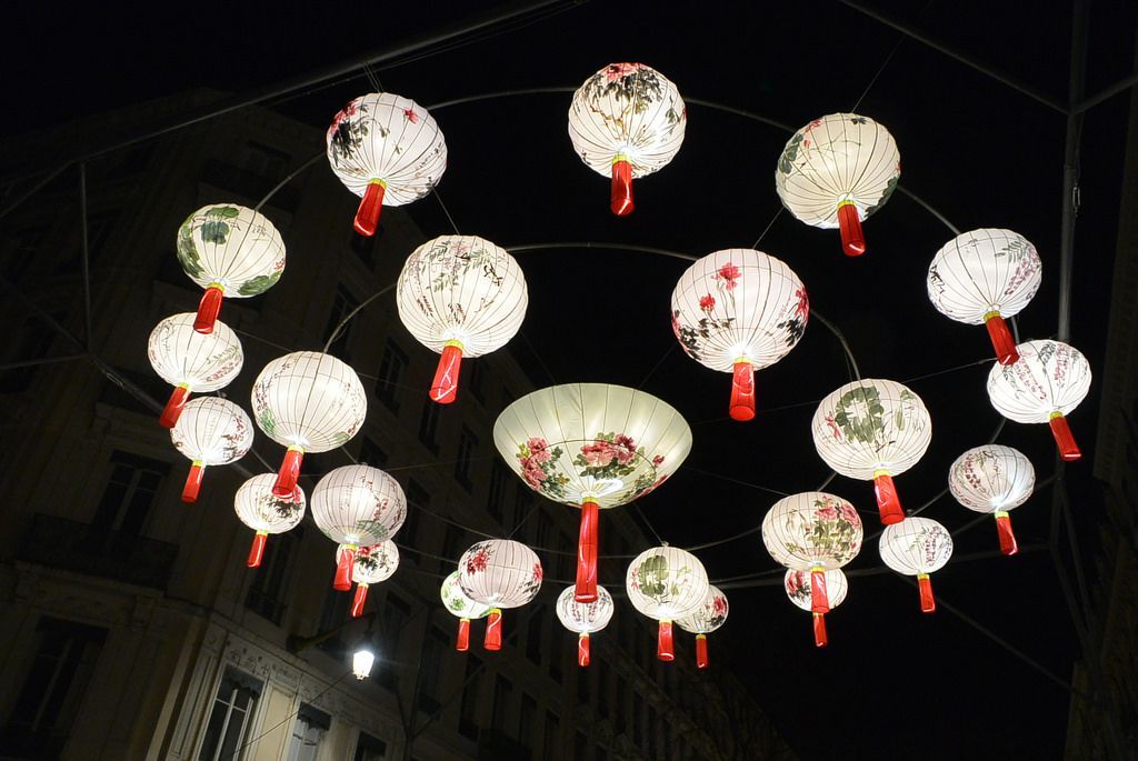 在河另一邊的新城繁華的街道上,每條主要商業街都有不同風格的彩燈照明。裏昂是世界照明燈的中心之一,每年會開世界燈具照明博覽會。我去的時候正是新年前後,裏昂街上的照明工藝燈自然不同凡響。這是市中心一條大街上的中國燈籠組,整條街都以中國燈籠作主題。難得,也謝天謝地,他們沒有采用中國的大紅燈籠。國內一說中國傳統,千篇一律就到處掛大紅燈籠,用多了就俗了,況且大紅燈籠也隻是中國北方的民宿。法國人用的中國燈籠采取典雅的寫意國畫花鳥圖案,雖說中國古時候沒有這樣的燈籠作為實用出現,但確實比我們自己的大紅燈籠高明多了。