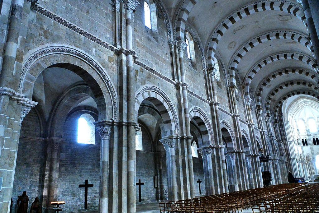 這是附近的Vezelay小村,村裏有一座山上的大教堂,叫做Basilica of St. Madeleine,教堂完全是中世紀早期羅曼式的,裏麵據說收藏了聖經裏受到耶穌基督感召改邪歸正的前妓女,馬麗抹大拉的遺骸,所以自古以來就是一處朝聖地。歐洲中世紀第二次十字軍就在這裏誓師出發。在小說《達芬奇密碼》裏,瑪麗抹大拉實際上是耶穌基督的妻子,並且按照基督遺命,是基督教會的領袖,隻不過後來被聖彼得等人奪取了領導權,才在聖經新約和後世的傳說中被編派成妓女。這個說法,實際是有出土的古代版的聖經福音書佐證的,《瑪麗福音》這本書雖然真真正正是古書,但是並不被基督教會認可為“信經”,叫做“偽經”,從宗教角度來說是異端邪說,但我不是基督徒,從曆史考古的世俗角度來說,我認為這些所謂“偽經”才是真正有價值的史料,它們提供了沒有經過粉飾,不被教廷官方認可的曆史的本來麵目。 所謂的“偽經”裏麵,不但有《瑪麗福音》,甚至還有《猶大福音》呢。拿這些書和所謂“信經”互相對照,才不至於被基督教正統思想所蒙蔽。----當然,瑪麗抹大拉可能真的是耶穌的妻子,但《達芬奇密碼》裏麵說她給基督生了孩子,並且其血脈一直流傳到今天,那就純屬是小說家的演繹,沒有史料作為根據了。