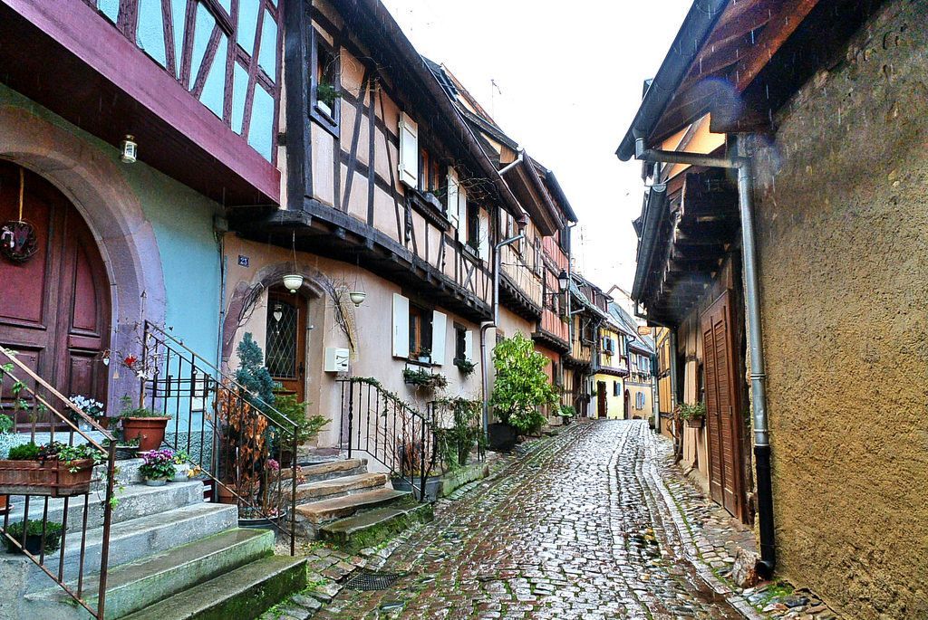 離開勃艮第繼續北上,到達阿爾薩斯Alsace,這裏原來不是法國領土,是德意誌神聖羅馬帝國的,路易十四時代被法國吞並,所以後來普法戰爭法國戰敗,德國拿回阿爾薩斯和洛林。小時候初中課文有都德的《最後一課》,洋溢著愛國主義情懷,其實懂得歐洲近代曆史以後我才明白,阿爾薩斯和洛林本來自古就是德意誌領土,有法國什麽事啊?然後第一次世界大戰德國戰敗,阿爾薩斯和洛林再次回到法國。我去過阿爾薩斯的首府斯特拉斯堡,所以這次的目的地是阿爾薩斯第二大城市科爾馬Colma,還有科爾馬郊外的一些產酒的小村莊。在法國、德國、意大利、英國這些地方,越是小地方,沒有遊客的地方,越是漂亮。科爾馬郊外的Equisheim小村,曾在2012年被評為年度法國最美村莊(法國從1982年開始每年評選最美鄉村,標準是居民必須在2千人以下,現在有150多個村莊擁有法國最美鄉村的頭銜,去年我去的多爾多涅河穀最多,有10個小村)。