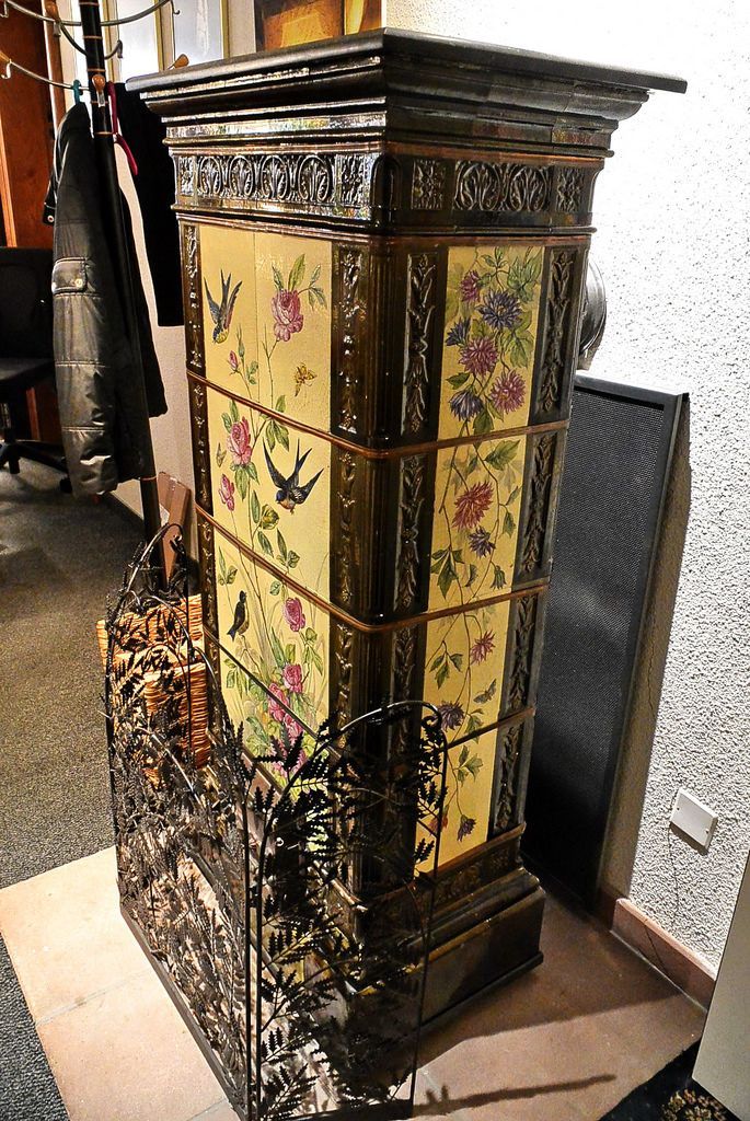 附近還有兩個村莊也榮獲過“法國最美鄉村”頭銜:Riquewihr和Hunawihr。但是我當晚住在科爾馬城外的Kaysersberg村裏,這又是一個德語地名,Berg是山,Kayser就是凱撒,皇帝。翻譯過來就是“皇帝山”。我個人覺得Kaysersberg比拿到法國最美鄉村的Equisheim還美。這是我住的村子正中心的旅館 Hotel Constantin,村中這麽狹窄的街道,居然還能為住客提供免費停車場,這家旅館的房子本身就是建於16世紀的半木梁建築,按照那時候的標準是豪宅了,每晚50多歐元,非常值得推薦。那裏的室內裝飾也是古色古香的,這是我房間外取暖的大陶瓷壁爐