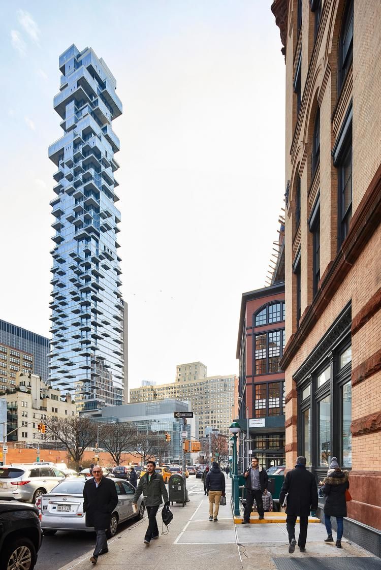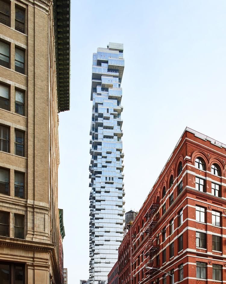 這座共 60 層住宅樓,在外觀上就顯得與眾不同,一個個大小不一的玻璃模塊堆疊在一起,像是在玩積木玩具疊疊樂(Jenga),人們因此為其取了個綽號——Jenga Tower。這些玻璃模塊組成了 145 套公寓,每一間都有懸臂式的玻璃陽台,除了 5 套公寓的設計是重複的之外,其他每一套都是獨一無二的。