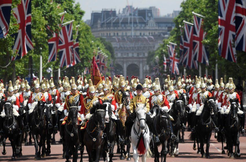 女王的官方生日庆典,600多名士兵参加了游行。皇后的实际生日是4月21日,由于考虑天气的原因,传统上在6月份是庆祝的。