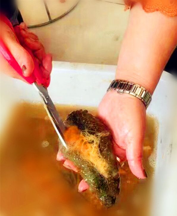 把海參花洗淨,因為沙子也是深海海參的食物,所以海參花有一些沙子需要清洗乾淨。