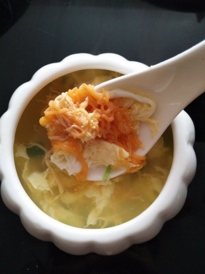 把水燒開倒入攪好的雞蛋,再次開鍋加入海參花煮1分鐘左右即可。