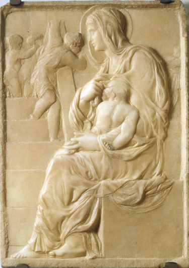 米開朗基羅(1475-1564),是文藝復興時期傑出的通才、雕塑家、建築師、畫家和詩人,與李奧納多·達文西和拉斐爾並稱「文藝復興藝術三傑」,以人物「健美」著稱,即使女性的身體也描畫的肌肉健壯。他的雕刻作品「大衛像」舉世聞名,美第奇墓前的「晝」、「夜」、「晨」、「昏」四座雕像構思新奇,此外著名的雕塑作品還有「摩西像」、「大奴隸」等。他最著名的繪畫作品是梵蒂岡西斯廷禮拜堂的《創世紀》天頂畫和壁畫《最後的審判》。他還設計和初步建造了羅馬聖伯多祿大殿,設計建造了教皇尤利烏斯二世的陵墓。