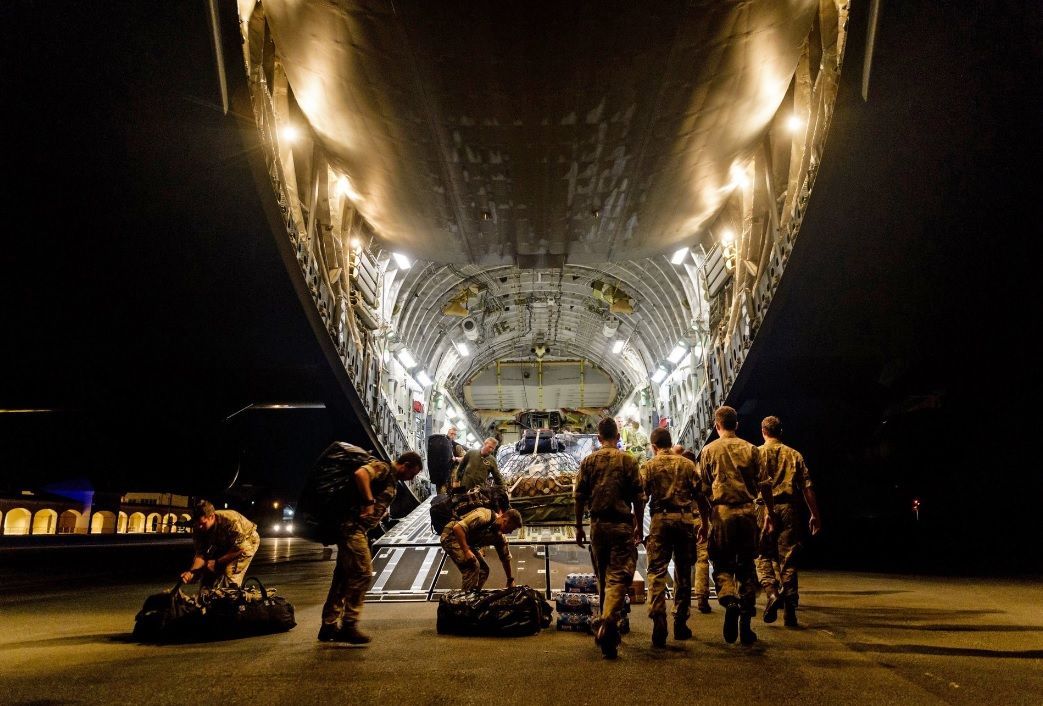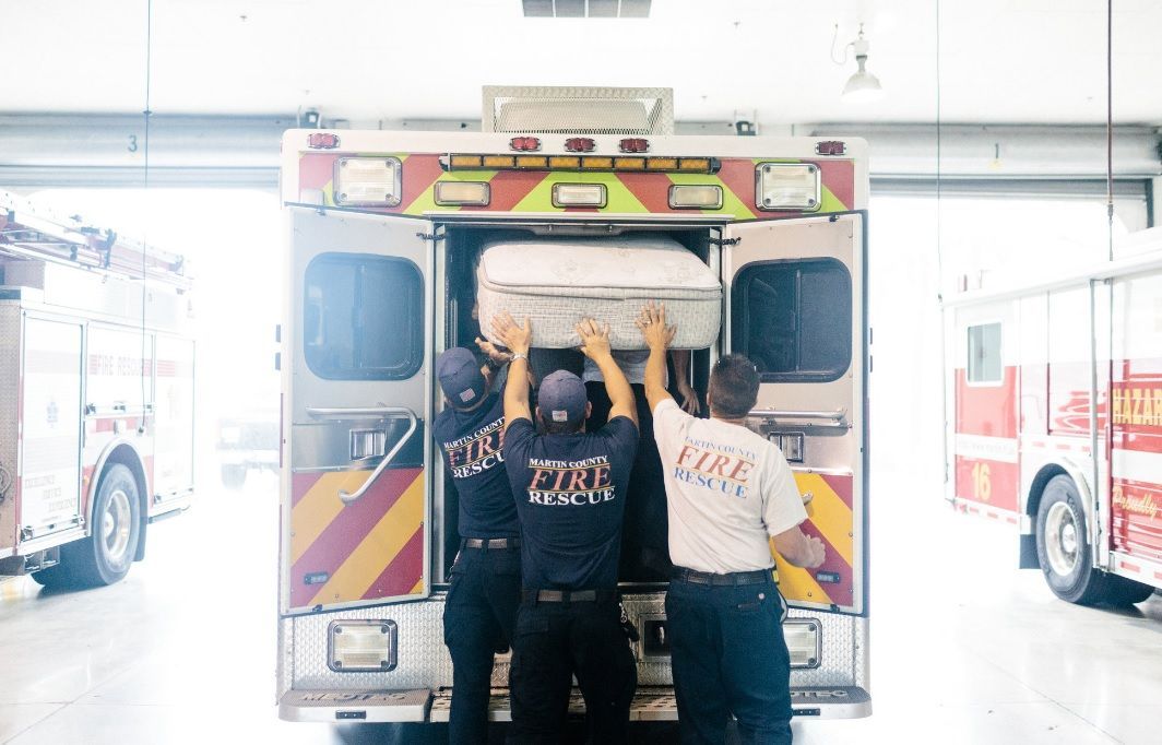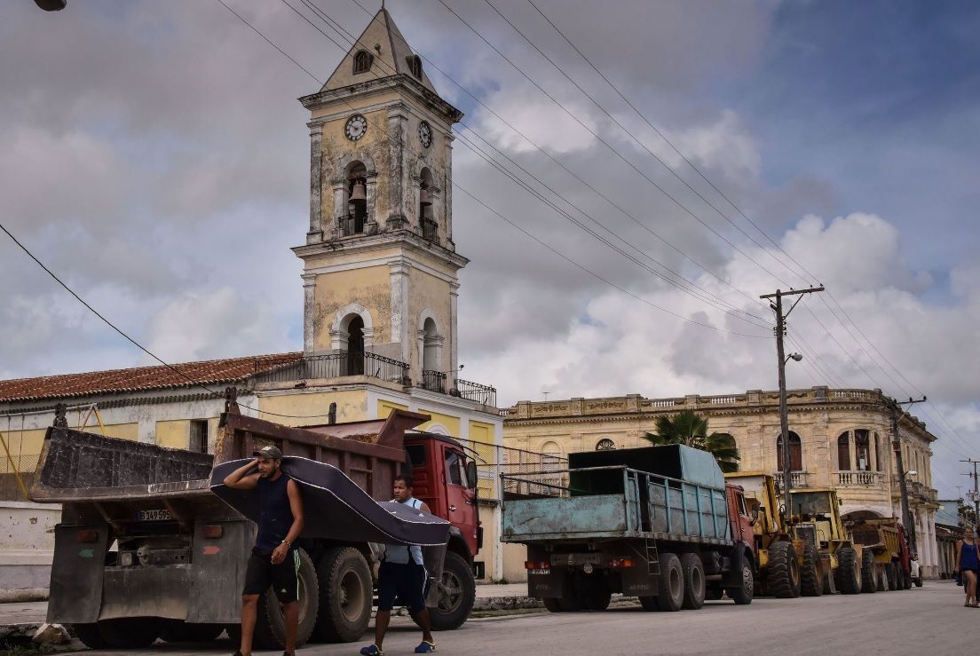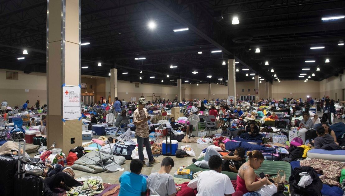 民眾正準備運送包裝水給美屬維京群島的聖托馬斯島的災民