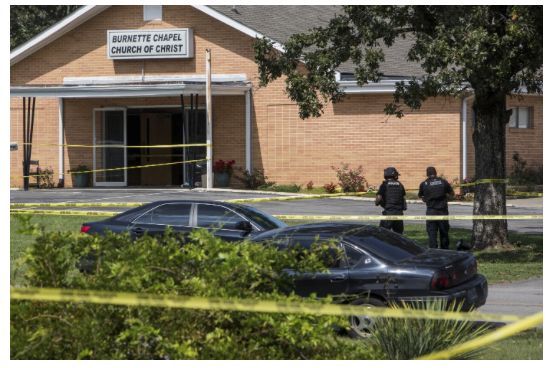 槍手血洗教堂導致一死六傷,事發後執法人員包圍事發地伯內特基督教禮拜堂