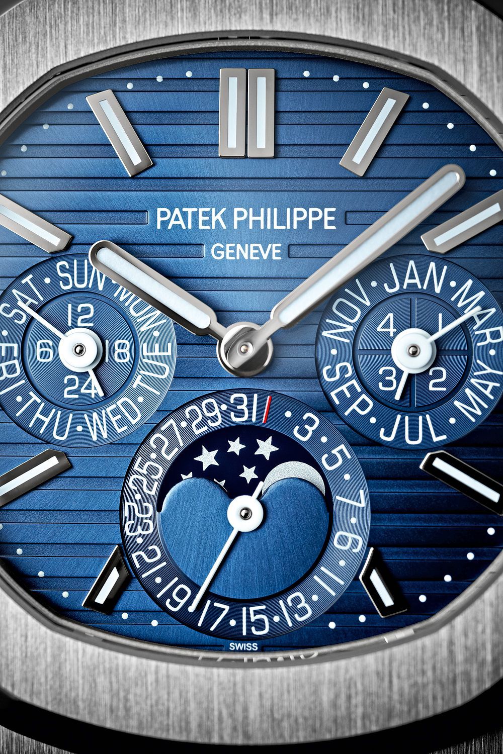 百達翡麗推出 Nautilus 系列的首款超級複雜功能腕表,獨具 1985 年以來百達翡麗最受歡迎的經典指針式萬年曆。巧妙地融合了休閒運動風格、精密複雜技術、堅固可靠性能。18K 白金錶殼內斂優雅,實用的日曆裝置可以自動識別每個月份的天數,甚至包括閏年才會出現的 2 月 29 日。這款腕表採用著名的 Caliber 240 超薄自動上弦機芯,這枚機芯採用微型自動盤設計,在百達翡麗上已經使用了數十年,無論是精準度或穩定度上都無懈可擊。
