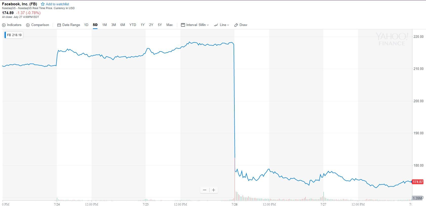雖然臉書首席執行官馬克·扎克伯格(Mark Zuckerberg) 2018年花了上半年的時間聽取但有關臉書如何誤處理用戶數據的抱怨,但是7月26日的交易使這間公司的市值蒸發了1,190億美元。這大致相當於科威特的國內生產總值。