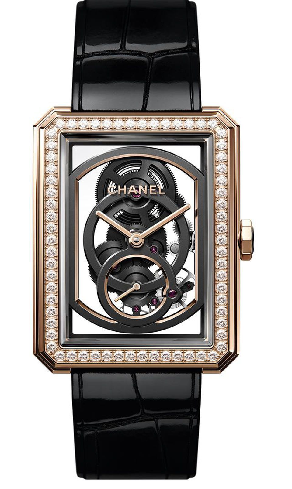 香奈兒使用鏤空來展示Calibre 3機械機芯,邊緣以斜面和鍍金設計,以配合錶殼。Calibre 3是香奈兒第三款自有機芯,並且製作期間長達三年。Boyfriend Skeleton由18k米色金(Chanel專有合金)製成。Boyfriend和其他款式中使用的細長錶殼形狀的靈感來自傳奇的No.5香水瓶。