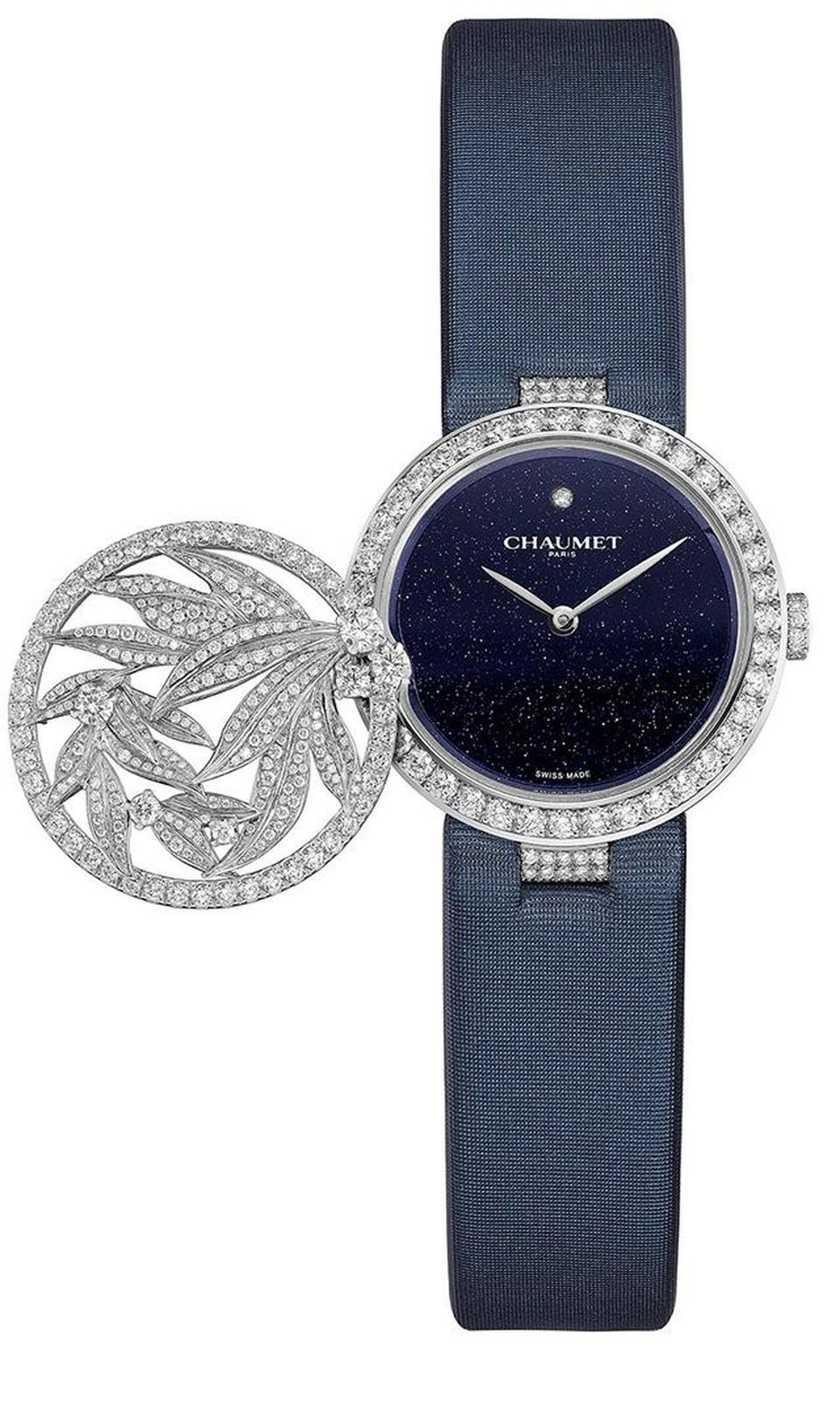 如果有六款獨特的手錶可以解讀月桂葉,那麼Laurier就是其中之一。在這款「秘密」腕錶中,它採用旋轉式錶殼蓋鑲嵌而成,鑲嵌鑽石,並鑲嵌在表圈和表耳中,共有446顆重達3.34克拉的寶石。錶盤為aventurine,機芯為瑞士製造的自動機芯。