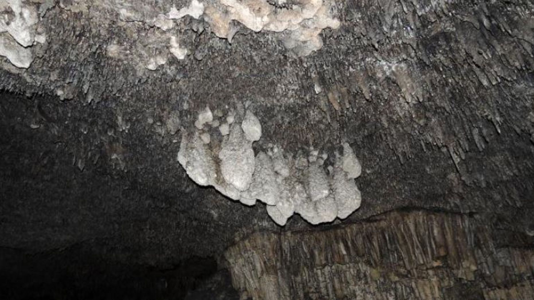 在speleothems(POS)的潛水過度生長的球莖鐘乳石特徵的特寫鏡頭。(新墨西哥大學)