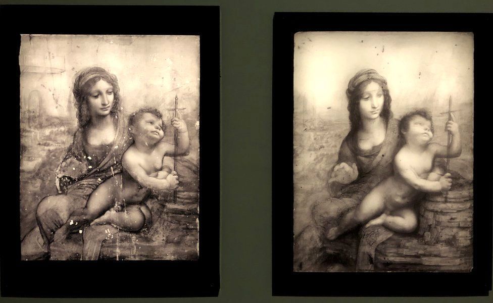 隨著藝術家的進展,萊昂納多的《Virgin and Child》在圖紙的不同圖層中顯示了不同的構圖演進