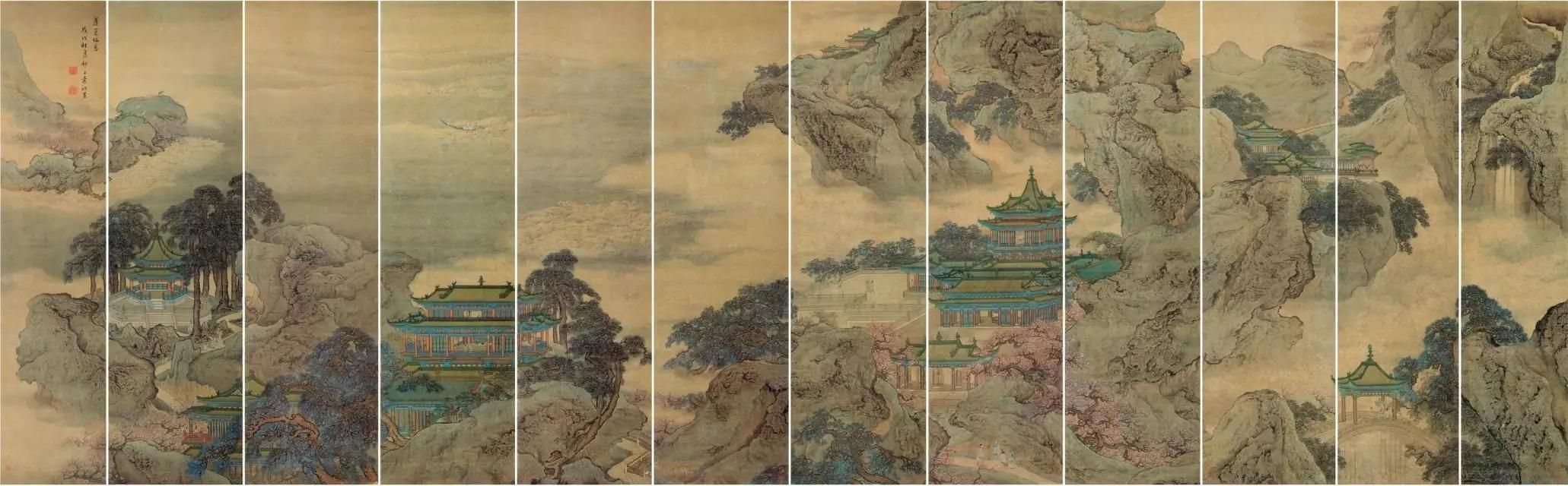 袁江《蓬萊仙境圖》 十二通景屏 設色絹本