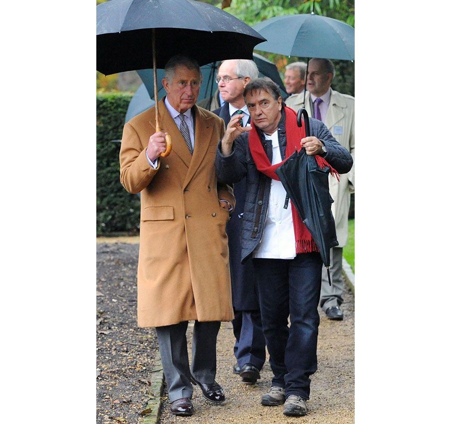 2013年11月1日:查爾斯王子穿著駝色外套,走訪龐德伯理(Boundbury)小鎮,祝賀其成立20週年。