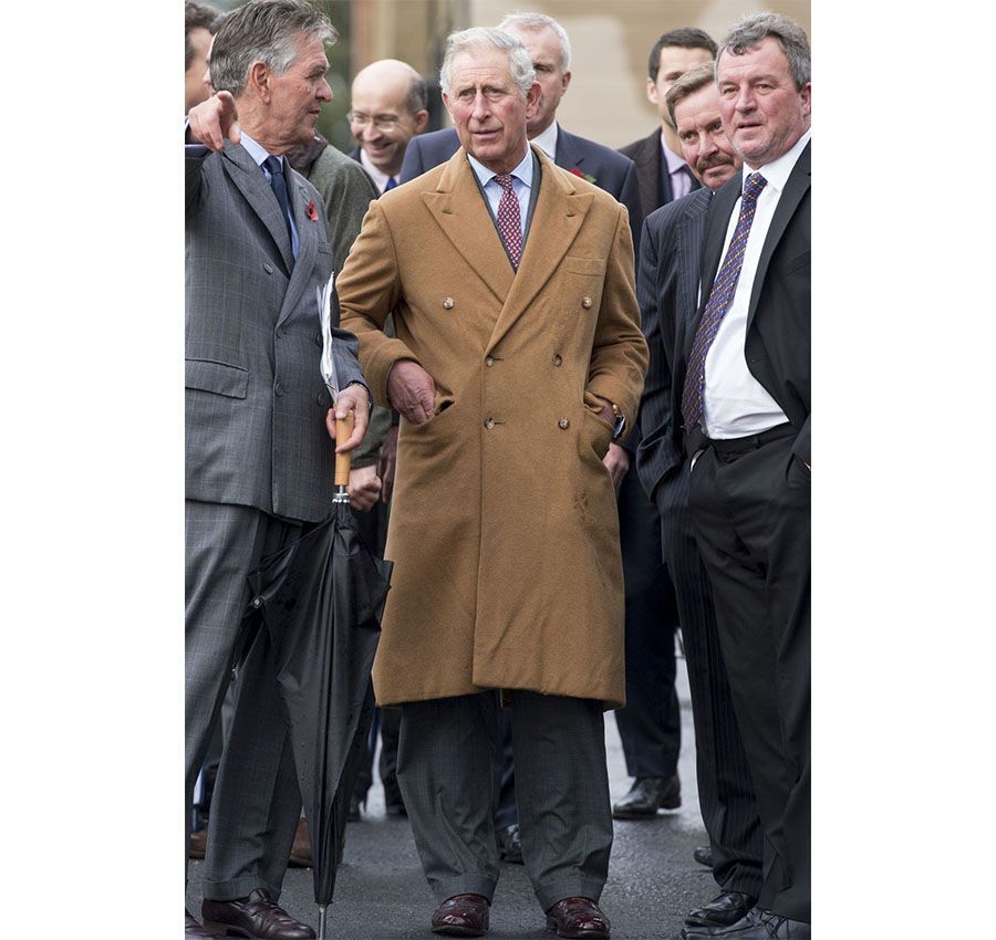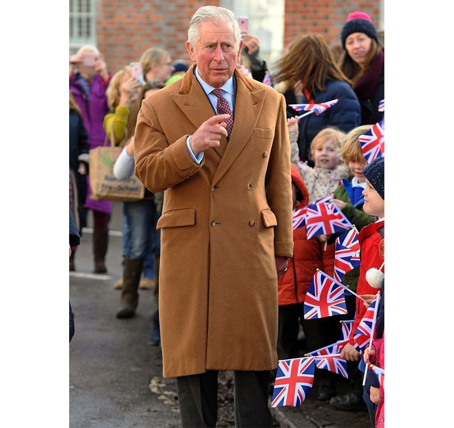 2017年12月15日:查爾斯王子在拉姆斯伯里村(Ramsbury)與當地學童見面時,穿著一件駝色大衣。雖然尚不清楚這是不是同一件駝色大衣,但肯定是他很喜歡的大衣。