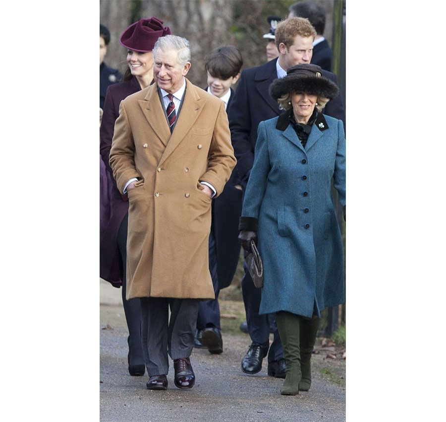2011年12月25日:在一次聖誕節教堂禮拜中,查爾斯王子穿著駝色外套。